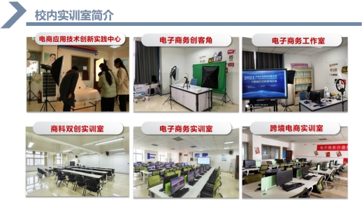 拥有河南省示范性实训基地(工商管理),有网店运营实训中心、新媒体运营实训中心、商务数据分析实训中心、商品采编实训中心、跨境电商实训中心。实训中心电子商务沙盘(对接全国职业院校电子商务技能大赛)、跨境电商模拟仿真沙盘、移动商务数据博弈沙盘、商务数据分析、新媒体采编运营、客户关系管理、视觉设计、国际贸易单证等多个软件,是集教学、培训、职业技能鉴定和技术服务为一体的专业化、多功能化实训中心。