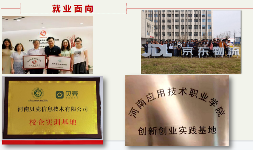 此外,我院与正大集团、京东物流、郑州肯德基、丹尼斯、郑州希尔信息技术有限公司、郑州九六—电子商务有限公司、郑州明美化妆品有限公司等多家企业开展校企合作。