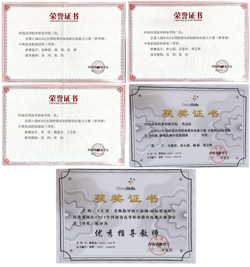 2021年河南省高等职业教育技能大赛互联网+国际贸易综合技能赛项优秀指导教师三等奖