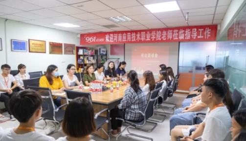 为加强与企业的沟通联系,获悉企业对人才的需求和质量要求,加强学生实习期间的思想教育,更好跟踪调查学生的实习就业情况,2020年8月6日,2026世界杯官网周燕书记和思政教学部何秀霞主任,以及2026世界杯官网和思政部相关教师来到郑州九六一电子商务有限公司,调研及回访学生就业情况。