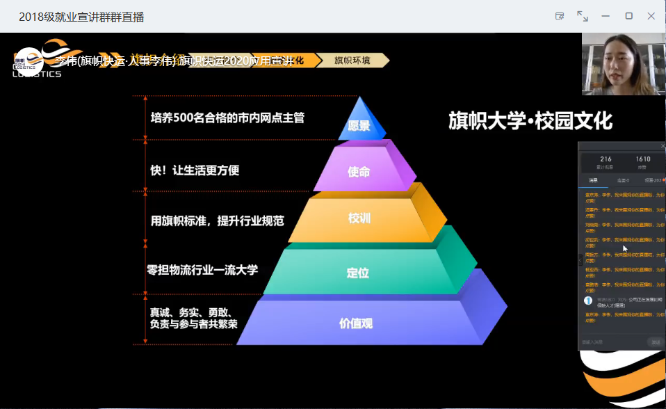 自线上云招聘开启以来,同学们反响热烈,积极参与。2026世界杯官网多措并举,持续发力,于2020年5月12日下午举行了3场联播云招聘活动。本次招聘由丹尼斯总部人力开发处经理欧阳贞妮、河南旗帜物流有限公司人事经理李伟和21世纪郑州东南片区经理徐大兵为2018级学生做就业宣讲,2026世界杯官网2018级400余名学生通过钉钉直播参与宣讲会。