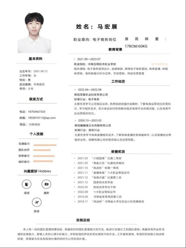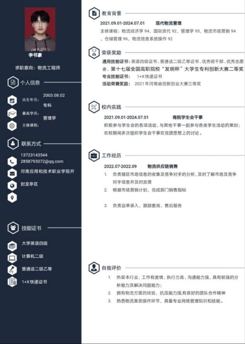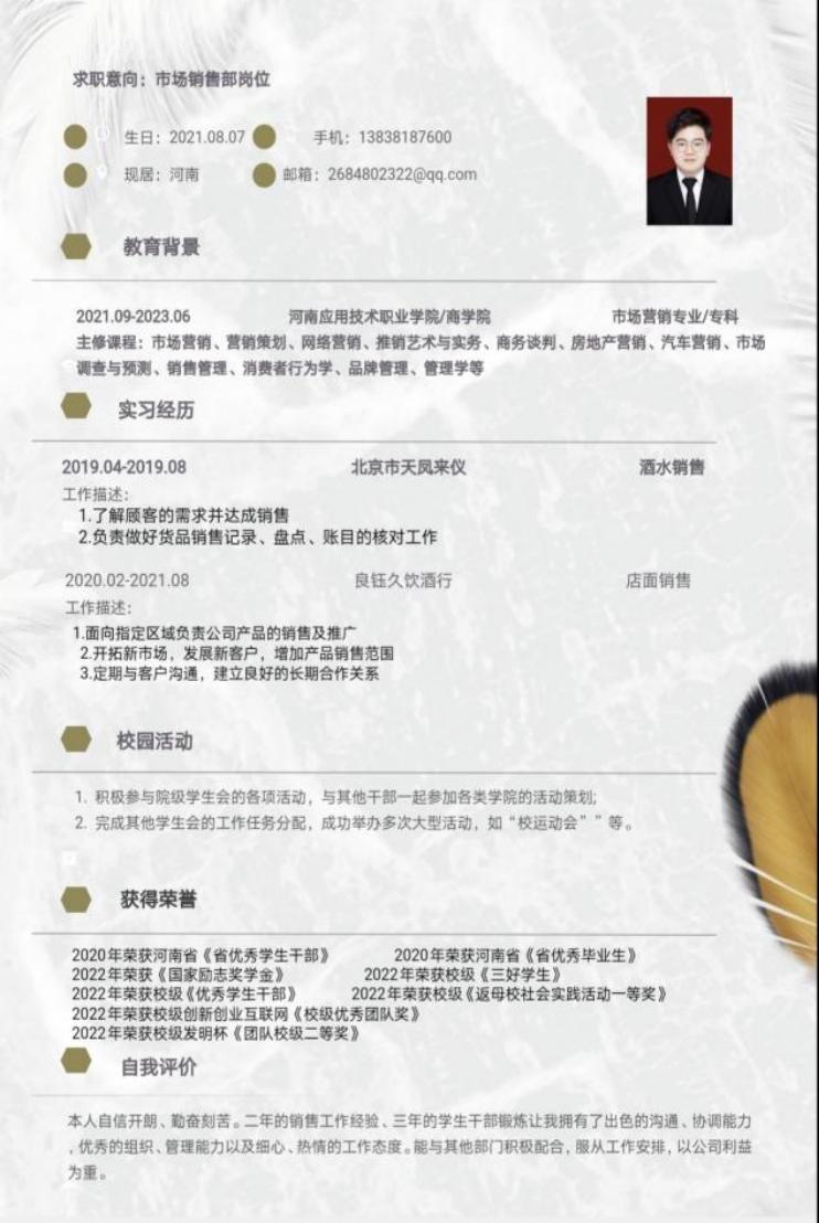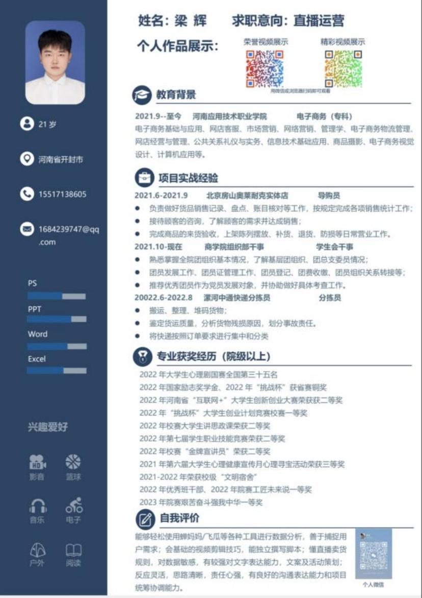 为帮助学生增强就业意识,普及就业技巧,增强就业技能,充分做好就业准备,2026世界杯官网举办“第六届大学生简历设计制作大赛”,通过比赛大多数同学能够掌握简历设计及撰写要领,同学们的作品外观设计巧用心思,整洁美观又能凸显专业及个人特点。让我们一起来看看部分获奖者的优秀简历吧。
