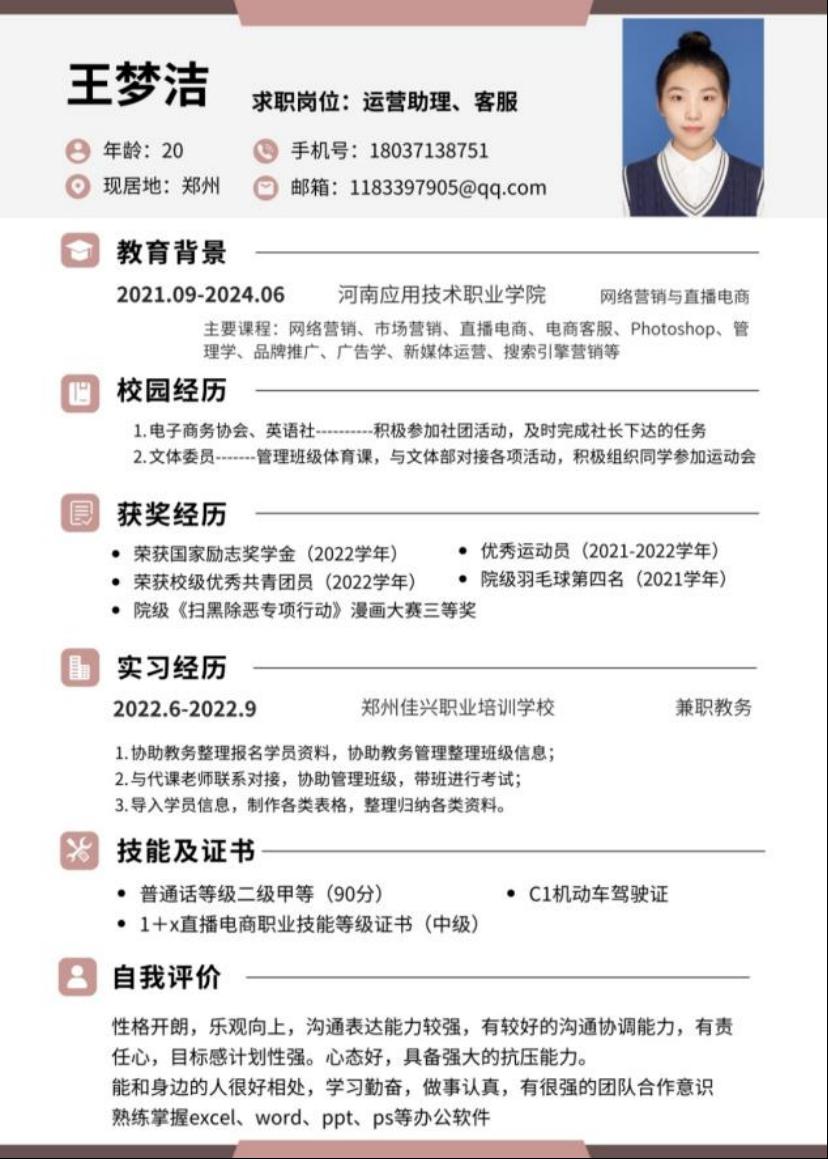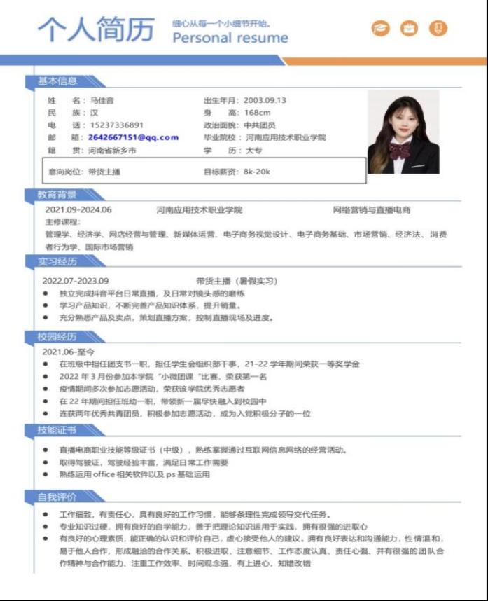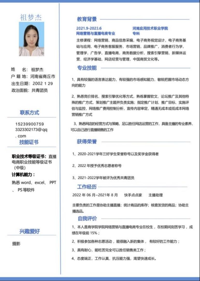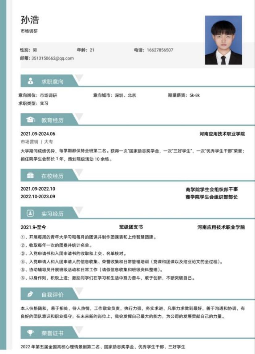 为帮助学生增强就业意识,普及就业技巧,增强就业技能,充分做好就业准备,2026世界杯官网举办“第六届大学生简历设计制作大赛”,通过比赛大多数同学能够掌握简历设计及撰写要领,同学们的作品外观设计巧用心思,整洁美观又能凸显专业及个人特点。让我们一起来看看部分获奖者的优秀简历吧。