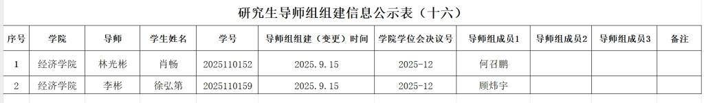 二、研究生导师组原则上应在该生学位论文开题前组建,组建后不得随意变更。学院导师组详细名单和具体信息附后,以供相互监督。研究生导师组的日常管理由研究生导师和培养单位共同负责,研究生导师作为研究生培养第一责任人的职责不变。
