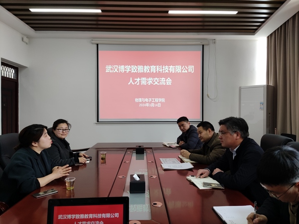 3月14日,武汉博学致雅教育科技有限公司总经理吴紫艳一行2人来院交流座谈,共同商讨毕业生招聘以及校企合作事宜。院分党委书记唐传球主持会议,bevitor伟德国际1946官网领导班子、院办公室主任曾虎参加活动。