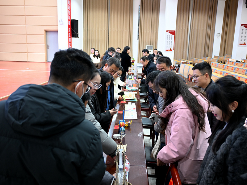 报告会结束,科学教育专业学生科技成果展示区的《地球为什么会转》《蔬菜水果王国》等自制科普书,等离子炮、抛石机、地球圈层结构模型等自制教具,吸引了与会教师目光,大家纷纷驻足观看、拍照、操作。