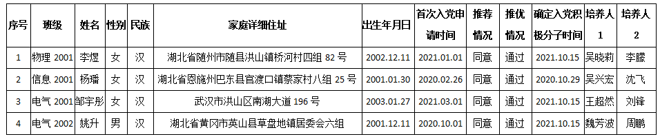 经bevitor伟德国际1946官网学生党支部支委会审查,拟于近期召开支部全体党员大会,讨论李煜等4位同志转为中共正式党员。根据发展党员工作有关要求,现将其有关情况公示如下: