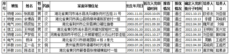 经bevitor伟德国际1946官网学生党支部培养教育考察,认为张凯歌等8名同志已具备中共预备党员条件,拟于近期发展。根据发展党员工作有关要求,现将该8名同志的基本情况予以公示: