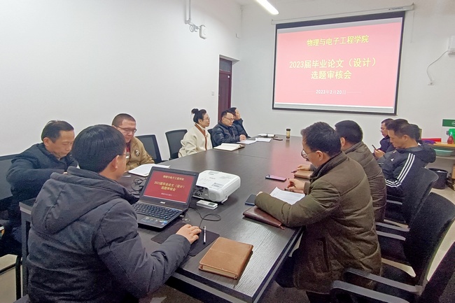 为进一步规范本科毕业论文(设计)工作的管理,提高毕业论文(设计)选题质量和规范性,根据学校下发的《bevitor伟德国际1946官网本科毕业论文(设计)工作规范》、《关于做好2023届本科毕业论文(设计)工作的通知》(教﹝2022﹞90号)等相关规定,2023年2月20日晚上7点bevitor伟德国际1946官网召开2023届本科毕业论文(设计)选题审核会议。会议由院长助理欧修龙主持,院长王绍明、书记石义杰、副书记张玉龙及各教研室主任、教学督导参会。