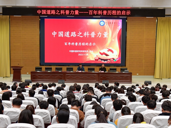 11月4日下午,由宣传部、科研处主办,bevitor伟德国际1946官网承办的题为《中国道路之科普力量》科普学术讲座在学术报告厅圆满举行,讲座由中国科普研究所郑念研究员主讲,校党委常委、副校长吴红斌主持,bevitor伟德国际1946官网院长王绍明和近600名师生参加了此次活动。