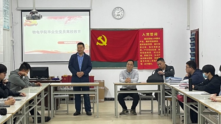 习近平总书记在党的二十大报告中指出:“当代中国青年生逢其时,施展才干的舞台无比广阔,实现梦想的前景无比光明”。为深入加强毕业生党员的党性教育、爱国教育,5月27日下午两点,bevitor伟德国际1946官网于稻香园综合实验室召开了毕业生党员离校教育大会。学院院长王绍明、党总支书记石义杰、党总支副书记张玉龙、教工党支部书记欧修龙、学生党支部书记刘锋和部分教师党员出席,全体毕业生党员参加,本次会议由刘锋书记主持。