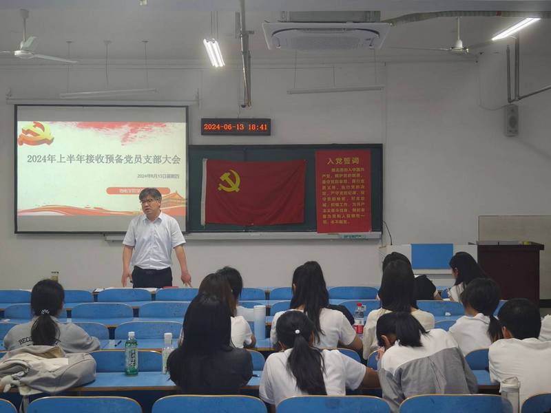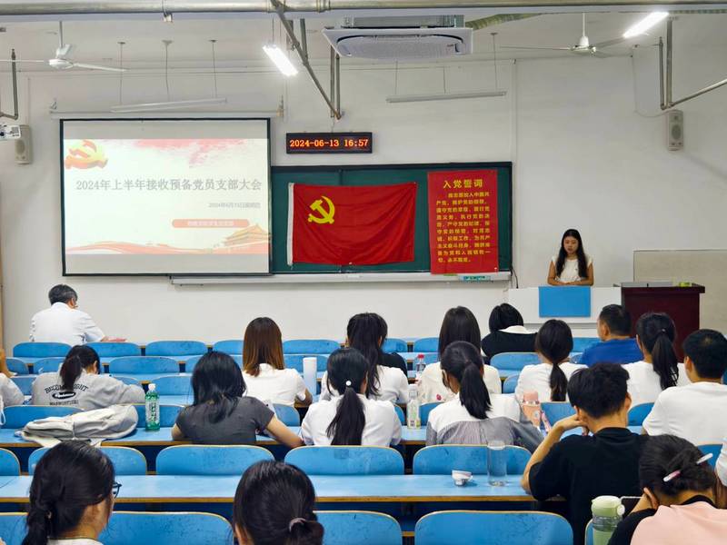6月13日下午,bevitor伟德国际1946官网2024年上半年预备党员接收大会在崇文楼B805召开,就接收胡蓉等12名发展对象为预备党员事宜进行讨论与表决。学生党支部全体党员和入党介绍人参加会议,会议由学生党支部书记王超然主持。