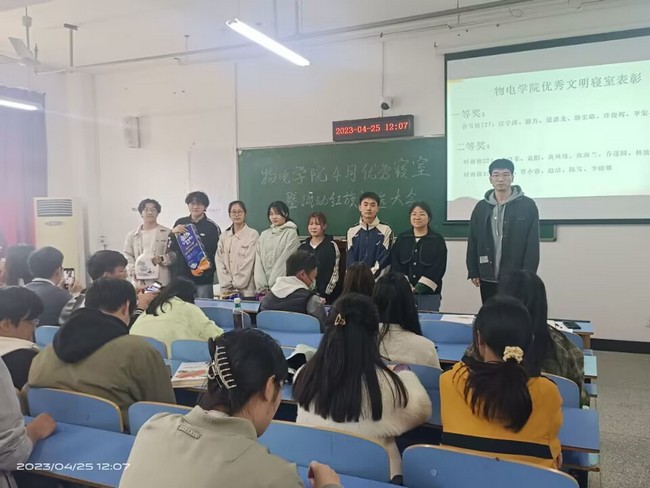 会议伊始,院自律委员会、院学生会学习部、院学生会权益部的同学向参会学生详细通报了本月各寝室的查卫情况、各班早晚自习情况以及自习室卫生情况,并对各方面表现优秀的六个寝室、两个班集体进行了表彰。