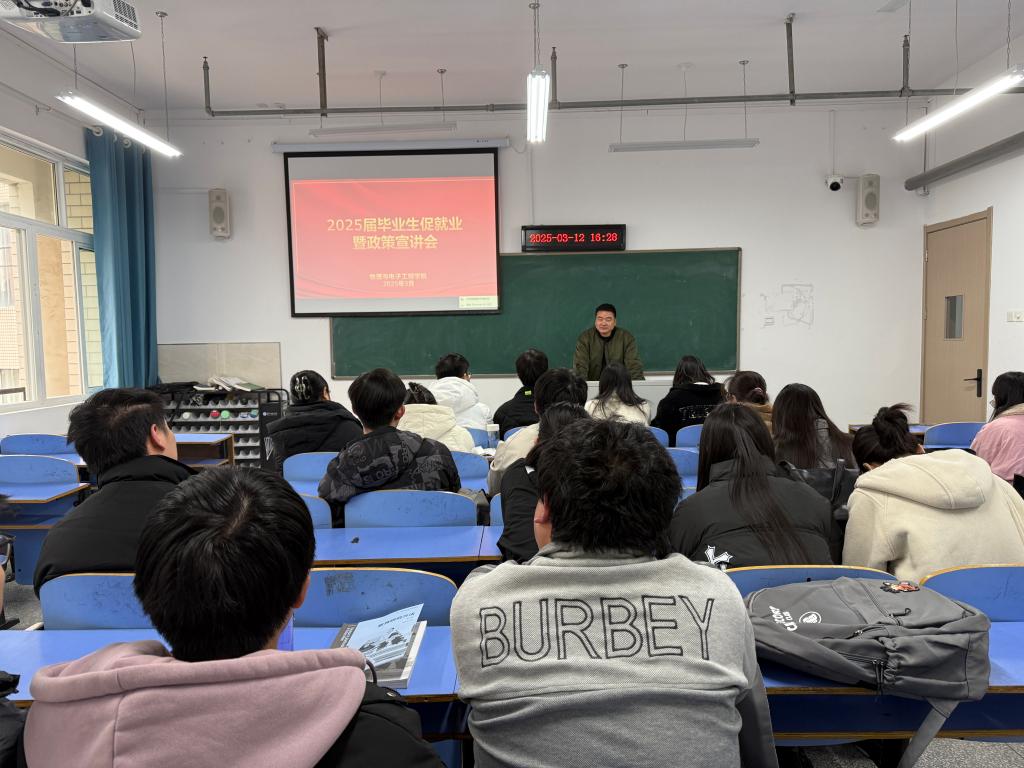 为进一步做好2025届毕业生就业工作,推动全体毕业生更加全面地掌握当前就业形势与政策,实现高质量充分就业,3月11日—12日,bevitor伟德国际1946官网在各毕业班举办2025届毕业生促就业暨政策宣讲会,会议由院分党委副书记戴俊主讲,毕业班辅导员贺培及2025届毕业生参会。