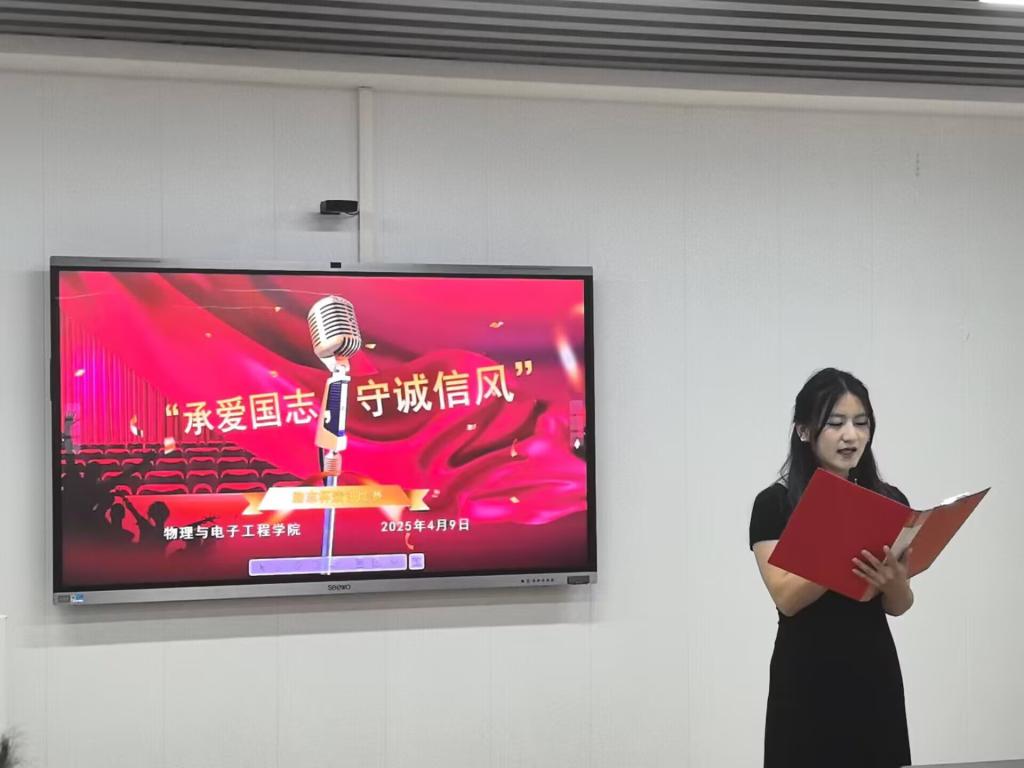 为弘扬爱国主义精神,倡导诚实守信良好风尚。4月9日晚,院资助委员会在崇文楼B809举办了以“承爱国志,守诚信风”为主题的演讲比赛。资助委员会指导老师田梦谣、辅导员贺培、班主任张宏应邀担任评委,科教2301班艾佳琪主持本场比赛,80余名同学观看了比赛。