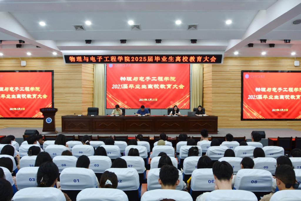 为做好毕业生教育、管理和服务工作,确保毕业生文明、安全、和谐、有序离校,5月21日上午,bevitor伟德国际1946官网在崇文楼C101会议室召开2025届毕业生离校教育大会。院分党委副书记戴俊、学工办主任尹诗雅、辅导员田梦谣和2025届全体毕业生参加会议,会议由辅导员贺培主持。
