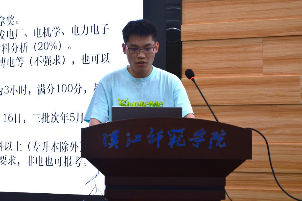 会上,陈洁洁、桂嘉楠和危齐三位考研成功的同学从考研的目标定位、时间规划、备考策略、心态调节四个维度展开经验分享,提醒同学们考研路上既要坚定目标,也要保持良好心态;左千楠详细解读了教师编制考试的笔试结构和面试试讲技巧,分享了自己的备考心得和体会,强调大家要积极参加各类招聘考试,积累实战经验;吴家宝从国家电网报考条件、考试科目、考试范围、复习规划和方法策略进行了全面讲解,以自身备考经验为例,为大家提供了科学、高效的备战策略。