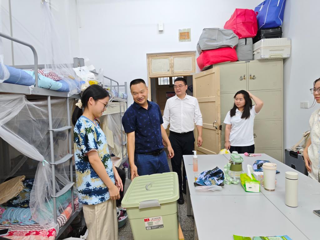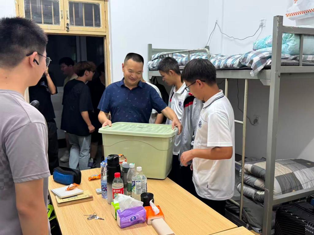 9月7日晚,校领导章平、院领导班子、辅导员和班主任前往宿舍走访慰问2025级新生,为他们送去学校的关怀与温暖。