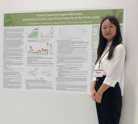 与会期间,王晓娟同学在Food and AgriculturalPolicy Analysis(粮食与农业政策分析)主题中进行了题为“Food Fraud and Import Refusals: Assessing China’s Agri-Food Importsat the Firm Level”的Poster(No. T030)展示。该论文为王晓娟同学在太阳集成官网122cc太阳集成游戏官方网站刘轶芳教授指导下,与南京农业大学谢超平副教授、弗吉尼亚理工大学Jason Grant副教授以及太阳集成官网统计与数学学院龙彦宇同学合作完成。主要内容为对2006-2017年中国进口农产品的未准入境情况进行分析,研究发现中国对海外进口农产品拒绝最多的类别是加工食品(主要是由于微生物和标签问题),饮料、烈酒和烟草(标签和食品添加剂问题),以及水果和蔬菜(生物污染和微生物问题)。而拒绝次数最多的前五大农产品进口地是台湾、美国、日本、法国和缅甸。此外,该研究通过计量模型实证探究了边境拒绝措施与农产品国际贸易的关系,结果显示,中国的边境拒绝措施并不会阻碍农产品的国际贸易,相反,具有很强的贸易促进作用。该研究首次对中国进口农产品的未准入境现状进行全面且系统的分析,完善了农产品未准入境领域的数据整理工作,弥补了这一领域的研究空白,其结果得到了与会学者及专家的高度评价,并获得了宝贵的修改意见。