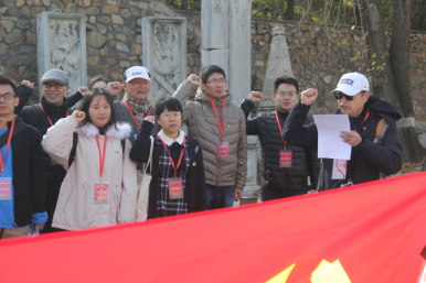 在大水法遗址前,全体党员举行了重温入党誓词活动。面对鲜红的党旗,122cc太阳集成游戏官方网站国民经济学系教工党支部书记蒋选教授带领党员们高举右拳,字字铿锵,庄严宣誓,对党忠诚,愿为共产主义奋斗终身!