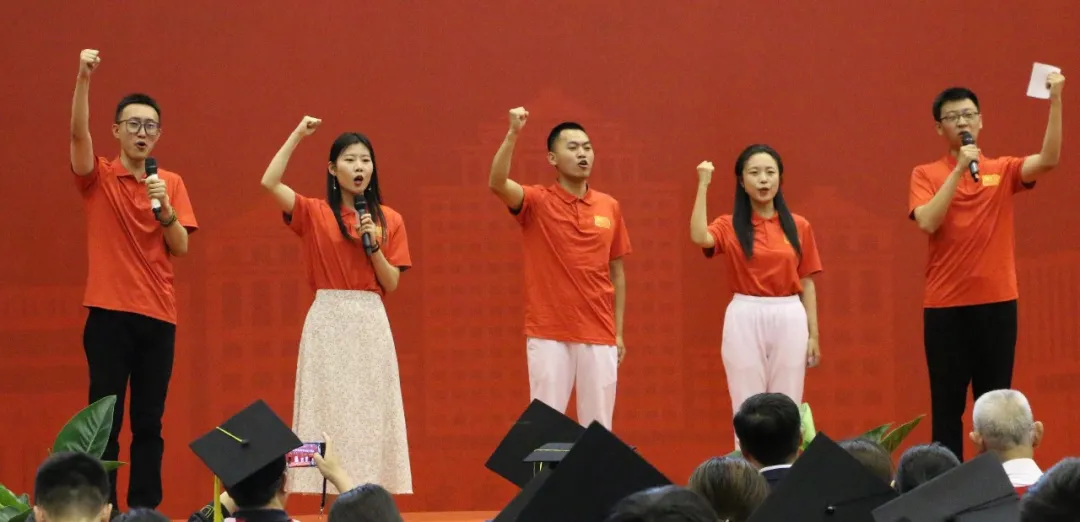 在建党一百年的庆祝活动中,我院5名毕业生赵嘉宇、刘春晓、胡书生、陈芳琳和罗宇顺积极参与并圆满完成专项任务,为自己的毕业季添加了浓墨重彩的一笔,毕业典礼上他们呼吁大家要把小我融入大我,用实际行动践行青年人的使命担当,在自己的岗位上发光发热,振臂高呼“请党放心,强国有我!”
