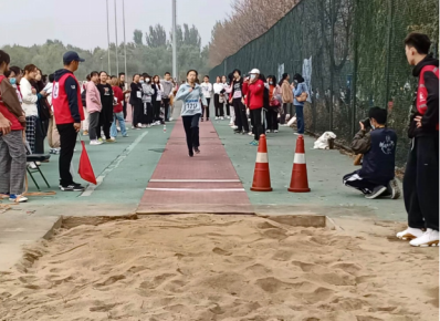 跳远比赛中,男子组代表包鸿鹏身姿矫健,助跑腾飞落地,女子组代表赵雅琪、金航伊、张馨睿、吴铮阳,身姿轻盈,助跑步步坚韧,拼出了速度,搏出了力量。